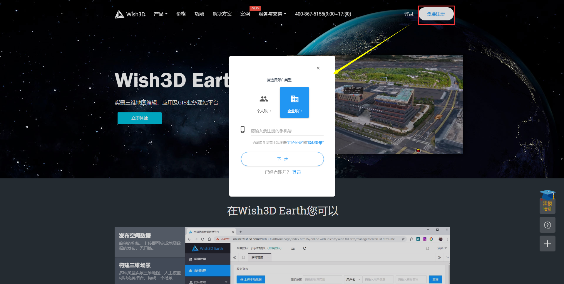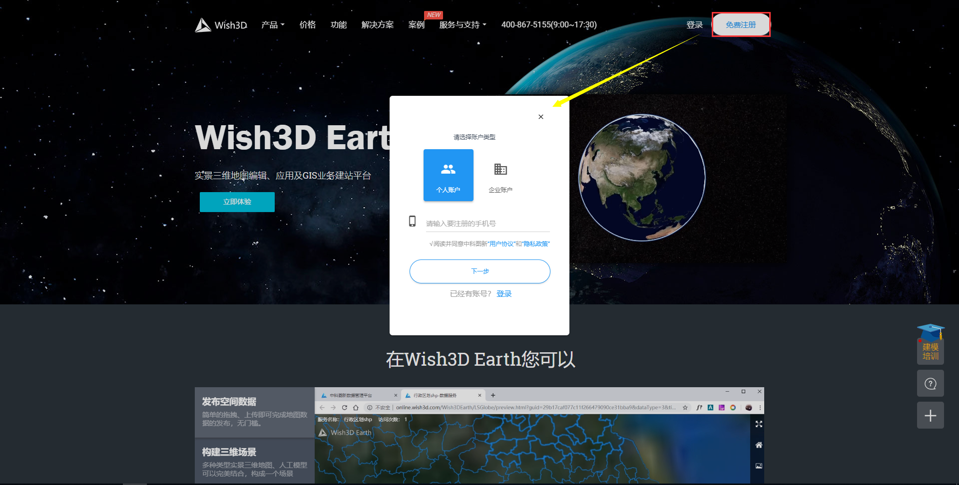 提供个人账户注册模式以及企业账户注册模式。