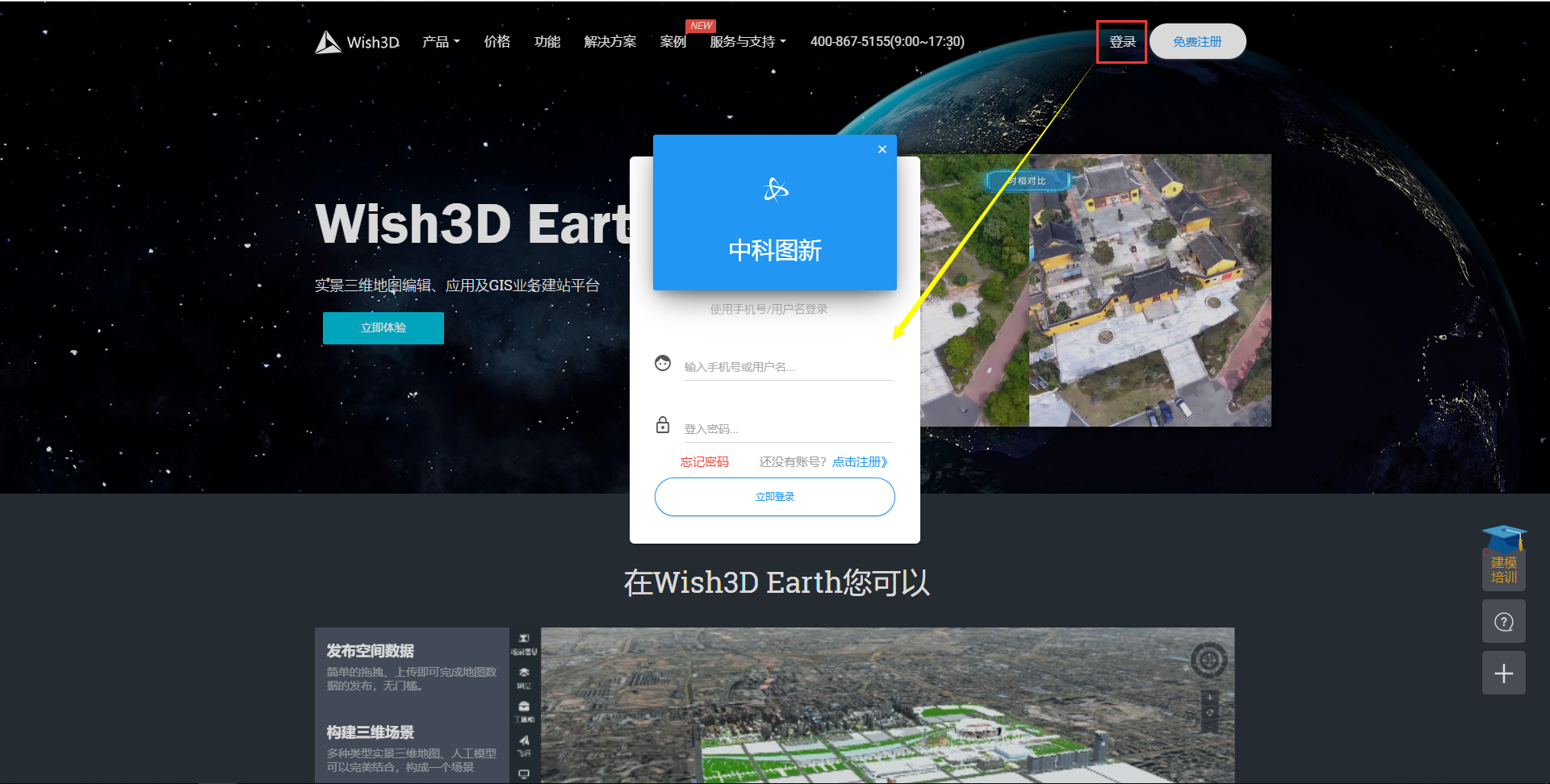 Wish3D·Earth是一款基于WebGL技术开发实现的浏览器下的三维地球编辑、展示应用。可支持对实景三维模型、人工三维模型、矢量、地图影像、地形等多种类型数据进行上传、管理、融合展示、快速分享等功能。该应用提供场景管理、数据管理、源数据管理、用户管理、以及系统管理等功能。