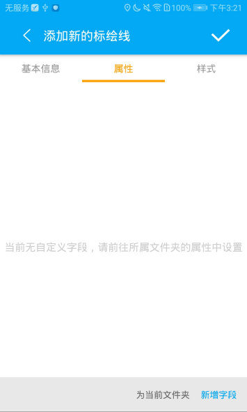 特别:属性字段是工程下要素文件夹的内容,用户可以在工程下,要素文件夹里面添加具体的属性字段,采集要素的时候,只要选择目标文件夹,即可按文件夹属性字段填写。