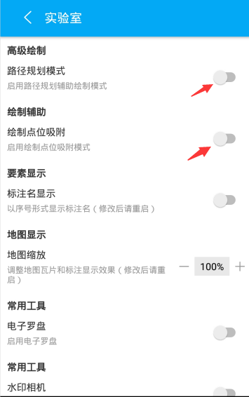 实验室页面中将路径规划模式与绘制点位吸附打开,再次回到绘制模式中打开高级工具时,开启的路径规划会出现在工具选项中