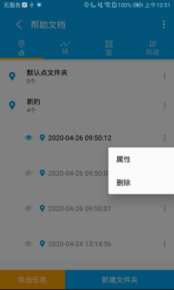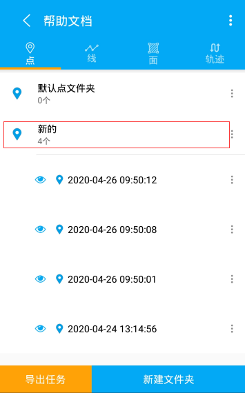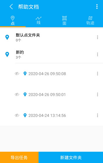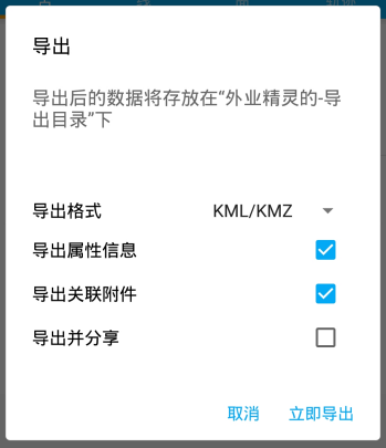 导出:点击文件夹操作选项中导出选项,会弹出导出弹框,可以针对需求进行KML/KMZ、SHP、Execl 进行导出。