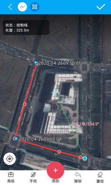 继续绘制:此功能只针对线面开放,点击线或面要素右侧操作选项时会新增继续绘制选项,点击后会飞行至该线或面的位置并进入绘制模式,可继续将线或面绘制。