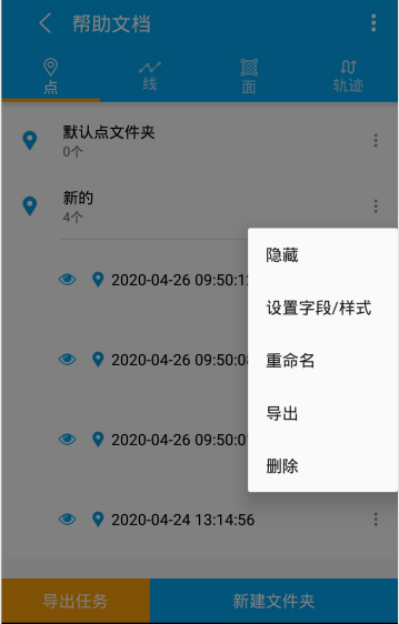 要素可见性:点击隐藏选项后,文件夹内要素会进入隐藏状态,点击显示会变为显示状态,对应主界面中要素的显示。也可通过要素中的图标来进行可见性切换。
