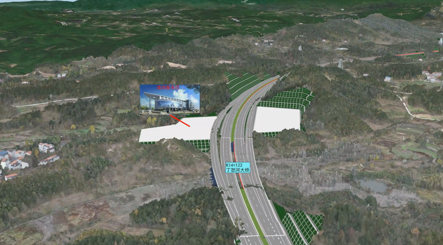 ​ 标签主要是用于在地图上添加一个标签显示重要标识。例如,在制作汇报场景中,添加多个标签展示不同建筑、位置,还可以在标签中插入图片,显示当前位置采集的现场照片等。