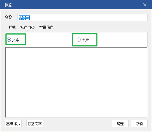 名称:默认在场景中显示的标签内容,如果在高级样式里面更改标签文本内容,场景中则显示标签文本内容;