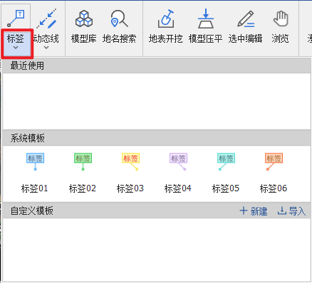 (1)点击“标签”功能下方按钮,展开模板列表。