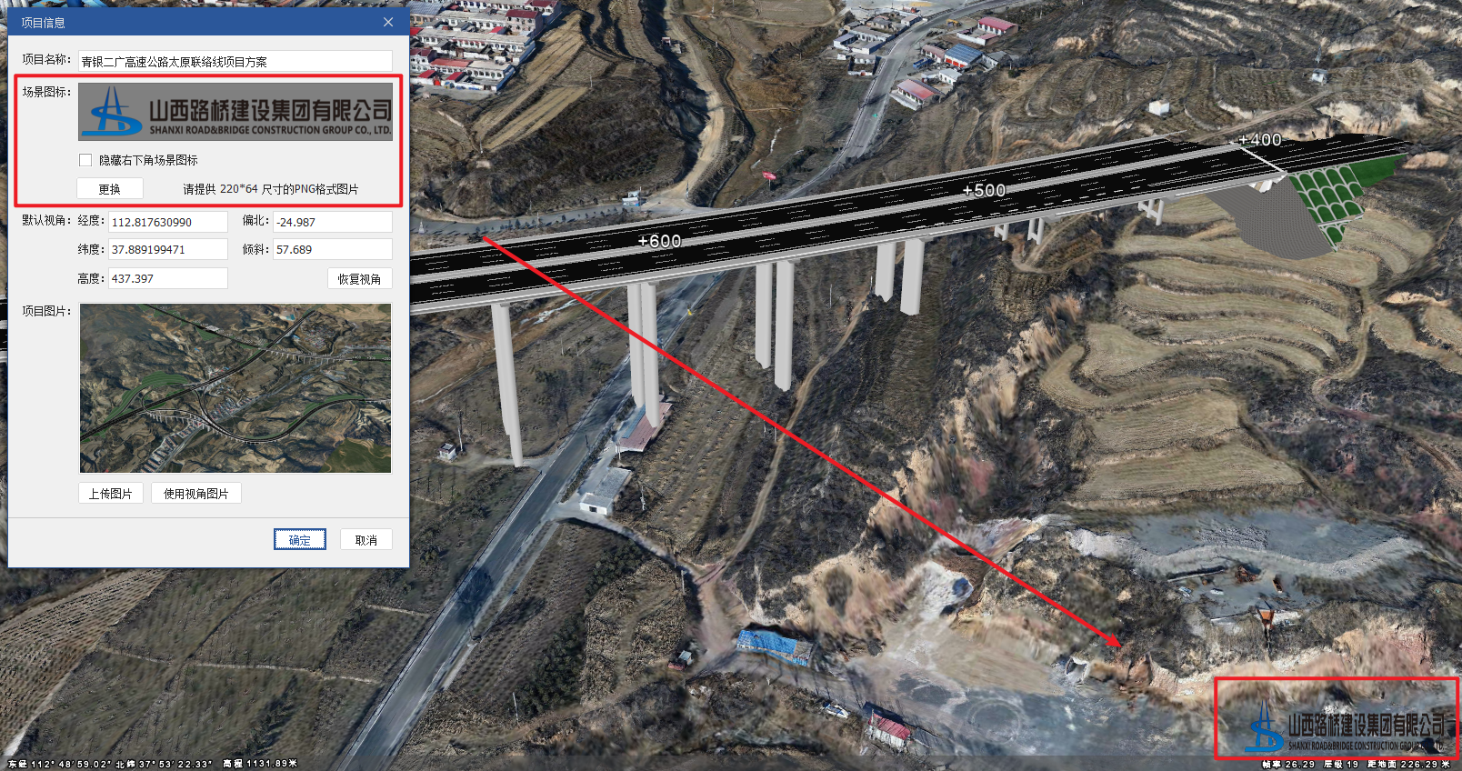 项目信息主要是用于设置当前整个项目工程文件的名称、场景图标(右下角logo)、初始视角、项目图片。