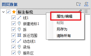 1、在“标注标绘”、其他KML格式图层以及KML图层内的文件夹上,右键“属性/编辑”