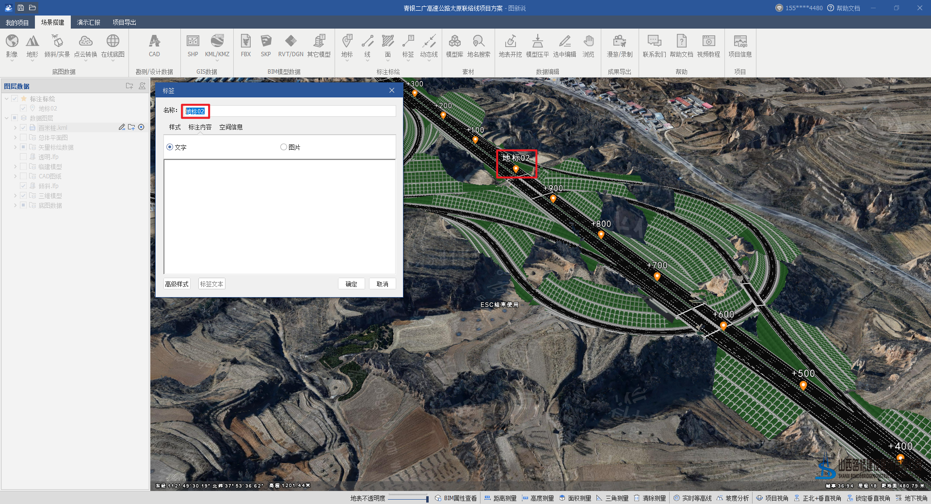 标注标绘是指在三维地球上标绘平面要素,可用于结合地图实现工程施工方案、工程设计方案等汇报标注。通过使用各种类型的标注去标绘各类具有特殊意义的图形、注释,可以在地图上直观、准确地展现方案,提高沟通的效率。