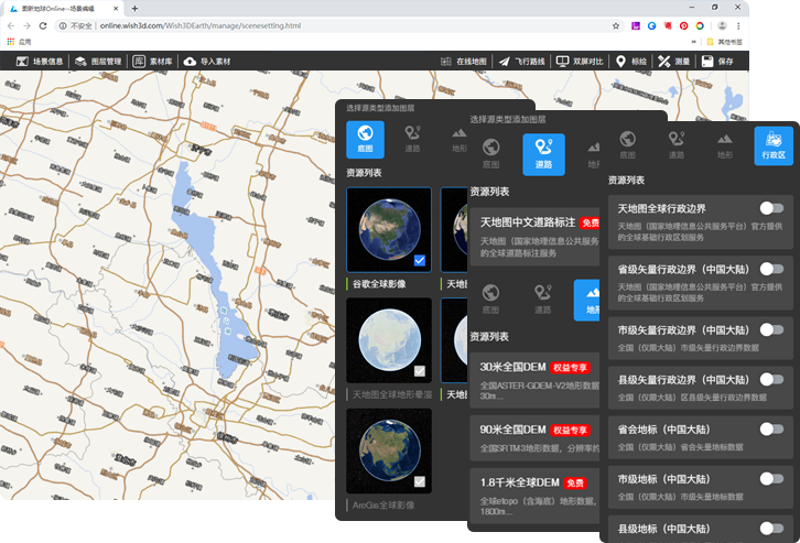 功能強(qiáng)大、簡(jiǎn)明易用的三維場(chǎng)景在線搭建,滿足實(shí)景三維和人工模型同場(chǎng)景展示的需求